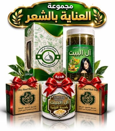 عباره عن تركبه زيت شعر بالاعشاب ومعها صابونتين نبلسي وكريم زبده الشيا هديه